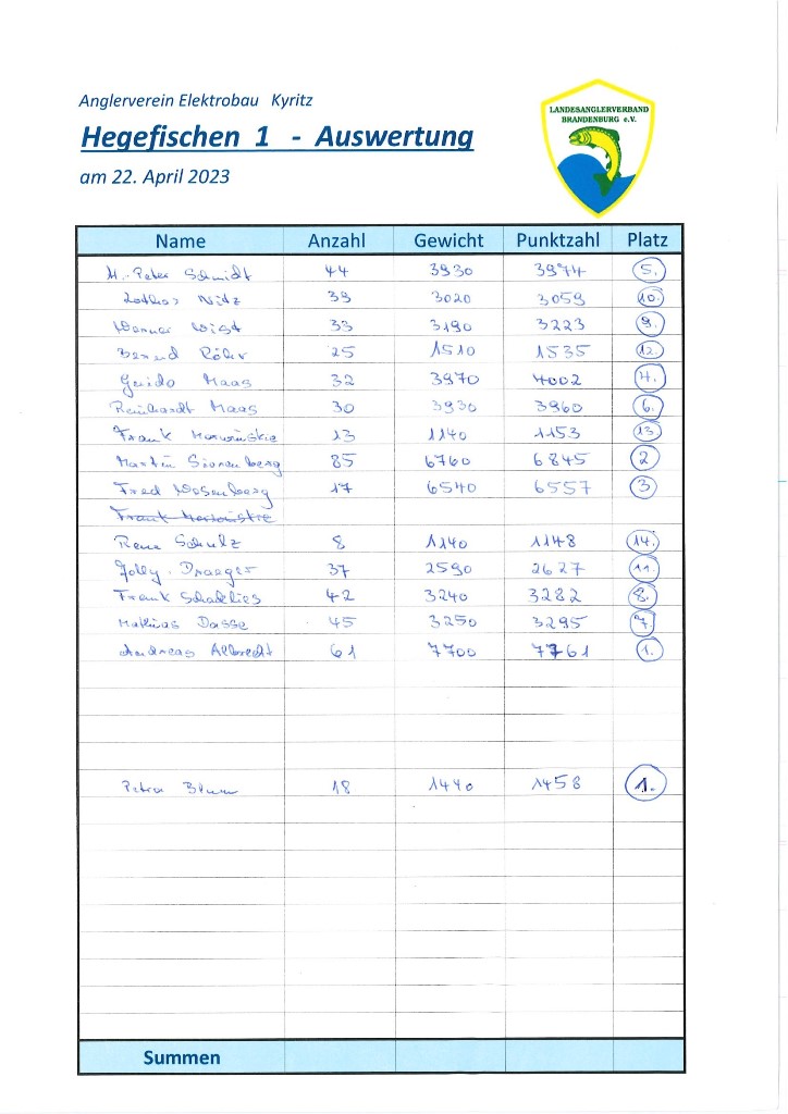 Hegefischen 1 - Anangeln am 22.04.2023